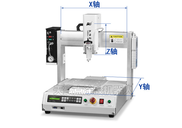 三軸點膠機,也稱自動點膠機,顧名思義是采用三軸平臺(XYZ)專門對流體進(jìn)行控制,并將流體以點、涂、噴等工藝形式附于產(chǎn)品表面或產(chǎn)品內(nèi)部的自動化設(shè)備。三軸,在點膠行業(yè)里,分別是X軸,Y軸和Z軸。X軸,控制左右的運行;Y軸,控制工作臺前后的運行;Z軸,控制上下的運行。我們知道XY兩軸聯(lián)動可以構(gòu)建二維涂膠路徑,完成二維圖形平面的點、線、圓、弧、面作業(yè);那么XYZ三軸聯(lián)動就可以構(gòu)建三維涂膠路徑,完成包含二維在內(nèi)的更復(fù)雜的涂膠路徑。