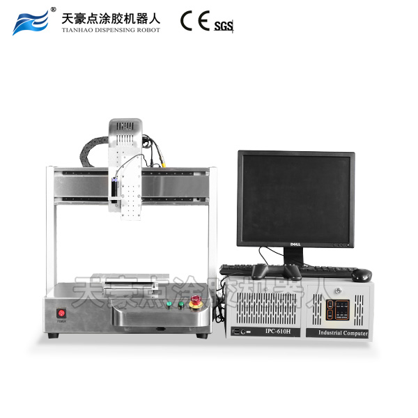 機器配置CCD輔助視覺編程系統(tǒng),一般適用于微小產(chǎn)品的生產(chǎn)工藝,其可代替人工在各種平面或曲面的產(chǎn)品上進行高精密自動化(如點涂膠)作業(yè)。